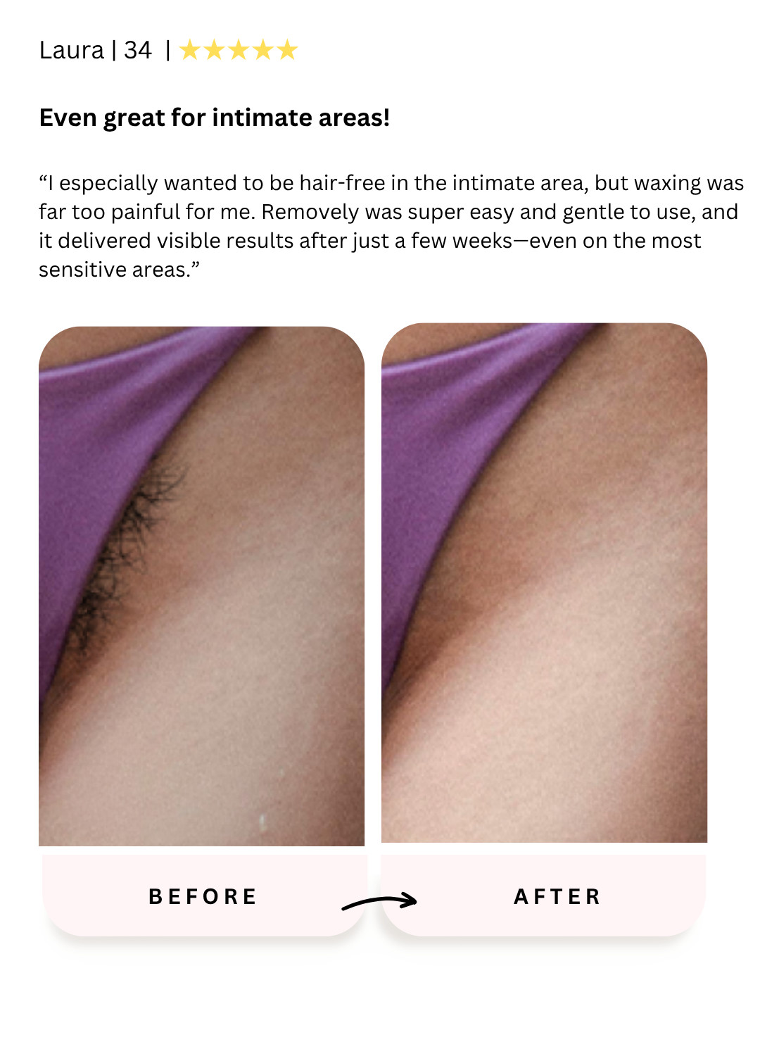 Yes, you can use Removely almost everywhere, including the face and sensitive areas like the bikini zone. However, avoid using it on the genitals, near the eyes, over tattoos, or on open wounds.